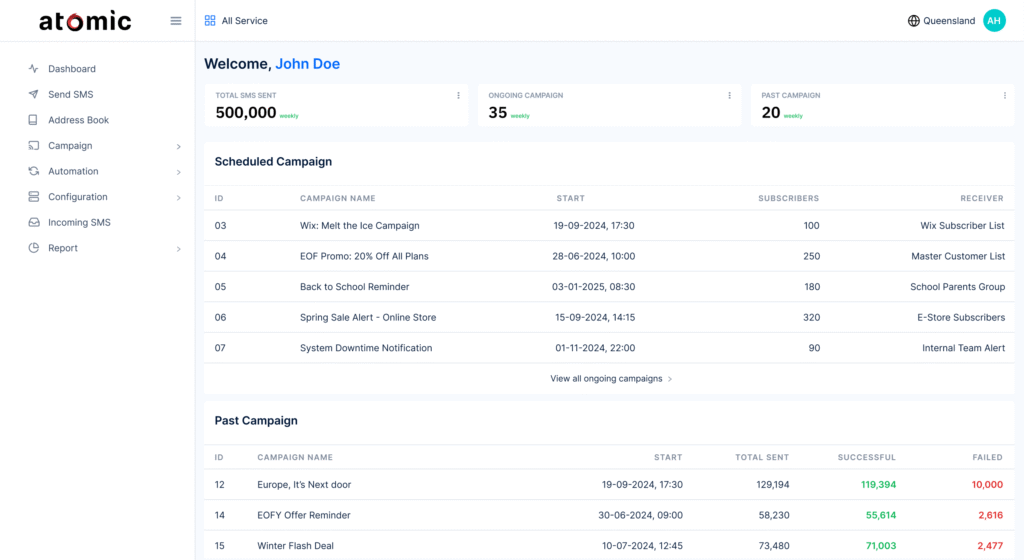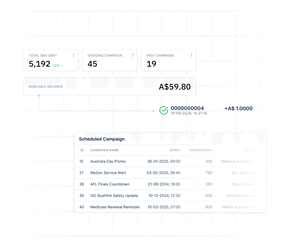 Manage campaigns like a pro with real-time updates, delivery tracking, contact management and stats—all in one fast, clear dashboard.