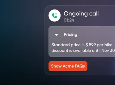 Help reps capture key details with live transcription, and surface knowledge and tips with live prompts, so they have all the information they need.
