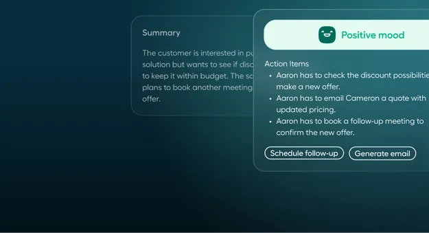 Automate tedious post-call tasks like generating follow-up emails for lightning fast wrap-up time.